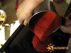 Prendete ora il vostro tegame e mettetelo in un punto abbastanza soleggiato (per un paio di giorni circa), la salsa deve infatti essiccare e, quando lo farà, diventerà più densa e leggermente scura.