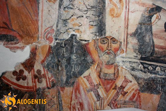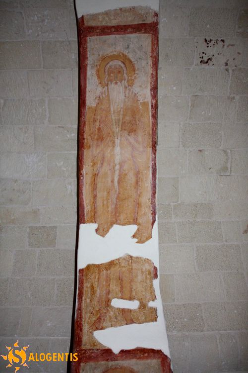 Stando all’ipotesi espressa dal docente Falla Castelfranchi dell’Università Salento, i quattro affreschi muresi possono avere una datazione retrodatata all’anno 1043 ed inoltre “sarebbero introdotti da un’altra immagine del Santo che, posto frontalmente alla maniera greca alla base del primo arco di sinistra, sembra voler indicare l’esordio di questo ciclo agiografico”.