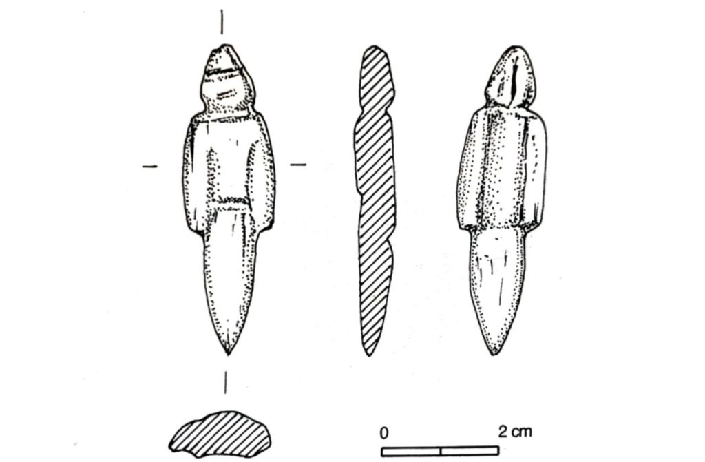 Un oggetto che fa sicuramente discutere, accusato anche di falso, se non fosse per una sincera veridicità ispirata dal contesto del ritrovamento. La zona dei laghi Alimini ha restituito in passato elaborati appartenenti ad un intervallo temporale molto ampio che va dalle ultime battute del Paleolitico fino al Neolitico. un’area la cui fisionomia più antica è fortemente connotata da culture legate a gruppi di cacciatori-raccoglitori in una fase che può aver visto una vera e propria transizione che dall’epigravettiano (20.000-10.000 BP) ci porta fino al mesolitico, in una fase ampiamente documentata dai ritrovamenti di manufatti, prodotti quasi “in serie”, essenziali, in grotta Marisa.