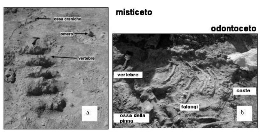 La cavatura però, oltre ad abbondante materiale per l’edilizia, può portare anche ad affascinanti scoperte. Sempre in località Signorella, all’interno della cava SIAT-DEl Piano di 31.000 m2, sfruttata per le calcareniti fino agli anni ’80 e per le argille fino ai primi 2000, sono stati individuati nello strato calcarenitico tre scheletri di cetacei in ottimo stato di conservazione: un odontoceto praticamente completo e due misticeti (di cui uno quasi intero e l’altro presente in pochi frammenti a causa dell’esportazione della restante porzione dello scheletro durante i lavori di coltivazione dell’arglla). Un ritrovamenteo che dovrebbe destare l’attezione sull’importanza geologico-ambientale ma soprattutto paleontologica e didattica che che ben vedrebbe questi geo-siti in un constesto di Parco Museo.